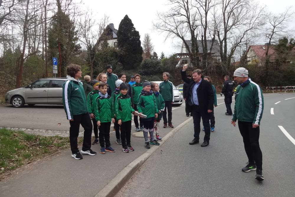 In Anwesenheit der Läufer und Trainer des LAV Elstertal e.V.; der 2. Beigeordneten Marlies Jakat; den Stadträten Christine Böttcher und Lutz Überschär gedachte er, gemeinsam mit dem Vorsitzenden der  TVVdN/BdA Basisgruppe Günther Dombrowski und Bürgern der Stadt, an die unzähligen Menschen, die damals „dem Verfolgungs- und Vernichtungswahn eines verbrecherischen Regimes zum Opfer fielen.“ Das Ausmaß an Unmenschlichkeit und Menschenverachtung übersteige jedes Begreifen. Nie wieder dürfe es geschehen, dass Menschen anderen Menschen das Recht auf Leben streitig machten.