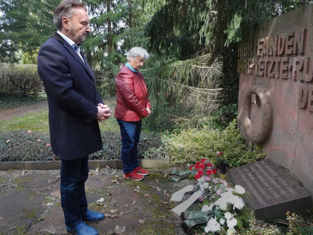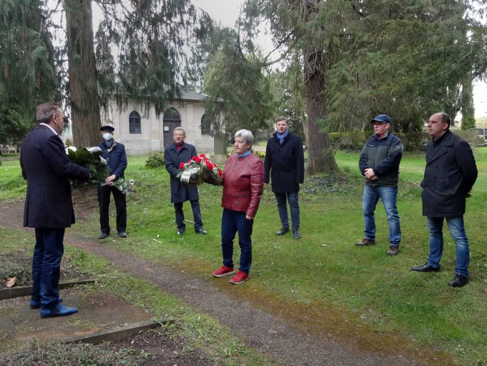 15.04.21: Ehrendes Gedenken am Grabmal der 43 getöteten KZ Häftlinge auf dem Köstritzer Friedhof