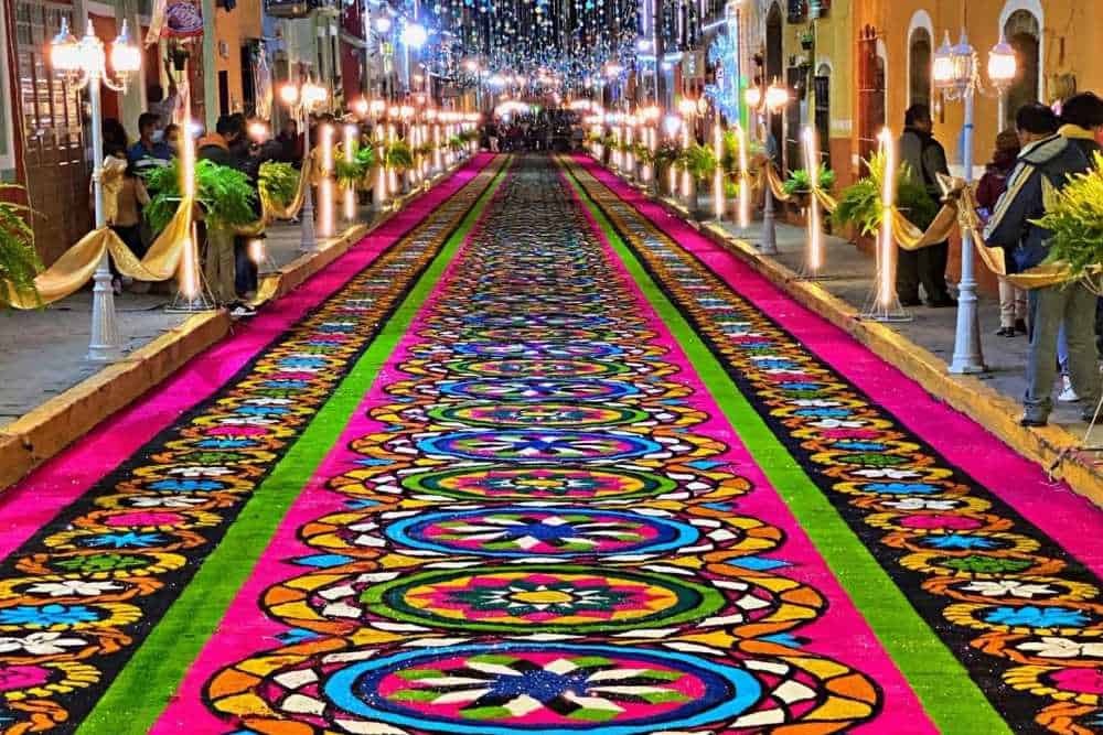 Mit der Herstellung dieses Teppichs von genau 3.932 laufenden Metern Länge wurde der Name der Magischen Stadt in das Guinness-Buch der Rekorde eingetragen. Daran waren 240 Kunsthandwerker beteiligt, die 80 Tonnen bunte Sägespäne, Dahlien und Sand verwendet haben. Etwa 500.000 Menschen haben sich dieses Spektakel vor Ort angesehen.