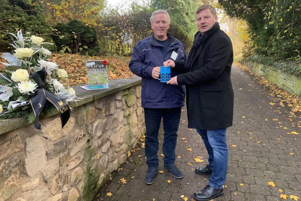 Im Rahmen der Haus- und Straßensammlung bittet der Volksbund Deutsche Kriegsgräberfürsorge jährlich im Oktober und November um eine Spende für den Erhalt und die Pflege deutscher Kriegsgräber. Soldaten der Bundeswehr, Vertreter des Reservistenverbandes und zivile Sammler sind dafür für den Volksbund unterwegs. Bürgermeister Oliver Voigt spendete am Volkstrauertag für diese Aktivität.