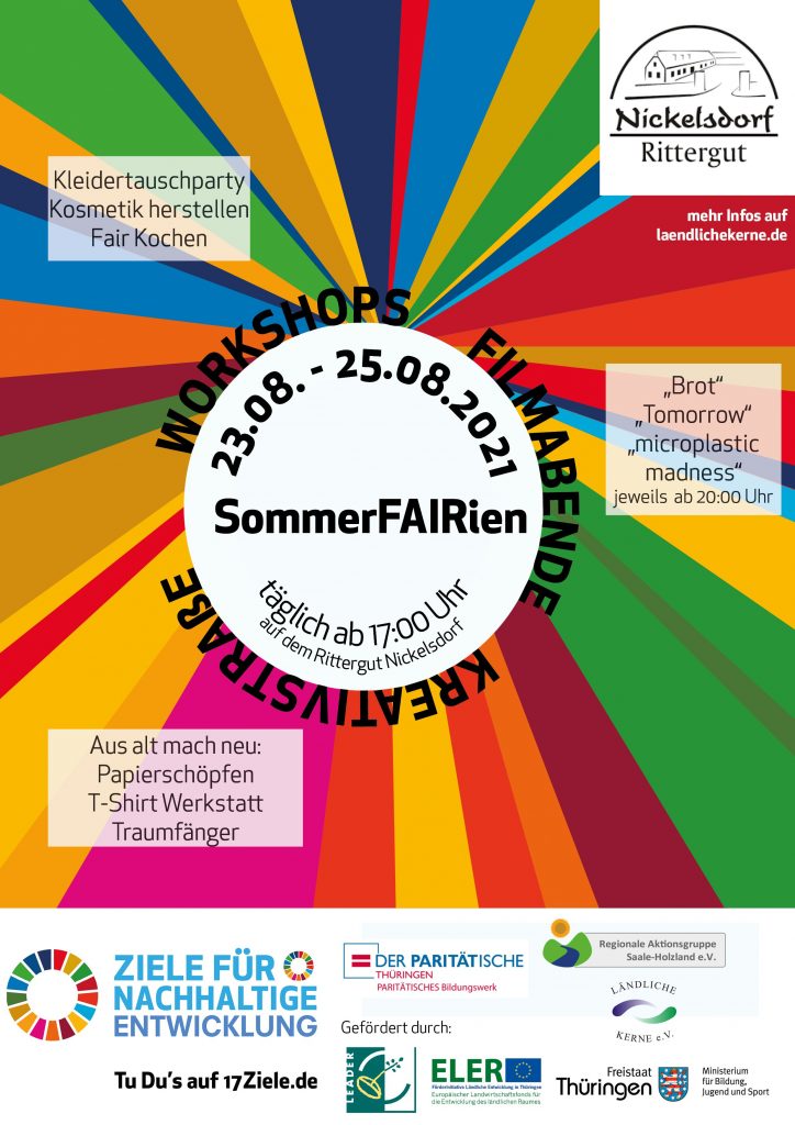 Vom 23.08.2021 bis 25.08.2021 gehen auf dem Rittergut Nickelsdorf die SommerFAIRien an den Start – Aktionstage für Nachhaltigkeit und globale Gerechtigkeit im Alltag.