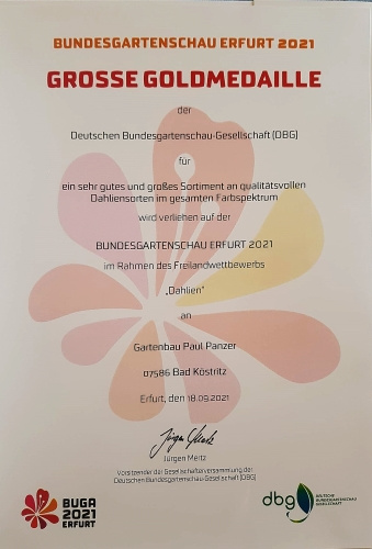 - der Großen Goldmedaille der Deutschen Bundesgartenbau-Gesellschaft (an PP), sowie zahlreichen Gold-, Silber, und Bronzemedaillen für ausgezeichnete Einzelleistungen im Sortiment des Betriebes.