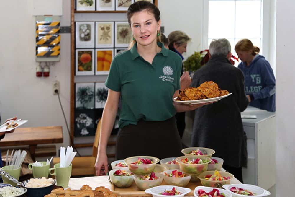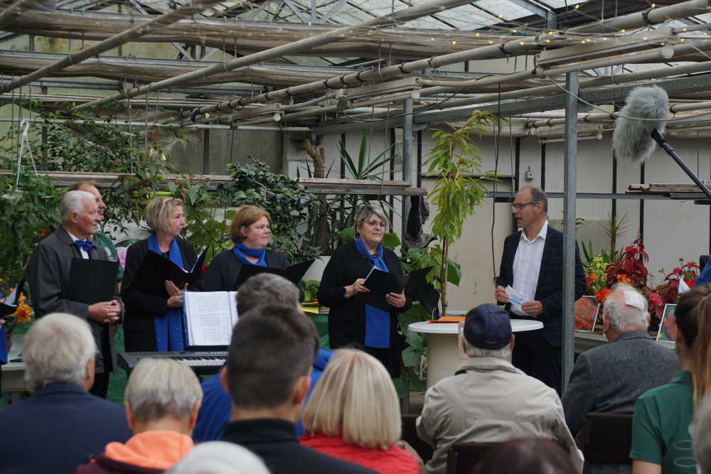 Neben den vielen Gratulationen und Grußworten gab es auch Kulinarisches von der Dahlie, das Tochter Anne-Sophie Panzer mit viel Liebe und Sachkenntnis aus ihrem Dahlienbuch gekocht bzw. zubereitet hatte. Der Chor „ensemble carmina“ übernahm die musikalische Umrahmung, in dem auch Dirk Panzer und Tochter Elisabeth mitsangen. Elisabeth studiert derzeit Gartenbau in Erfurt und wird so die Traditionslinie „Panzer“ in sechster Generation weiter führen.
