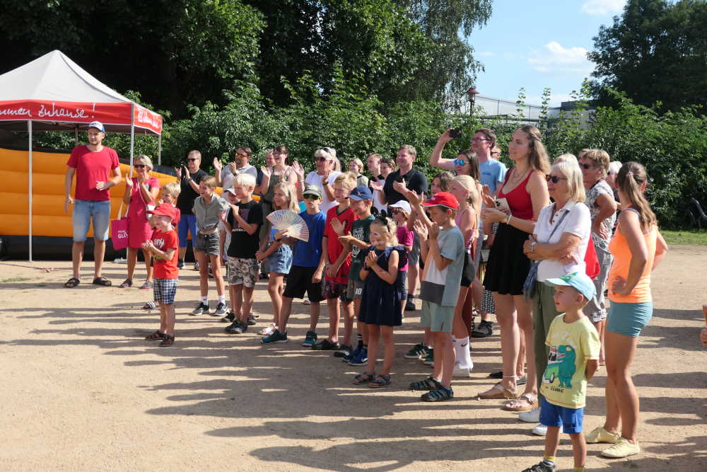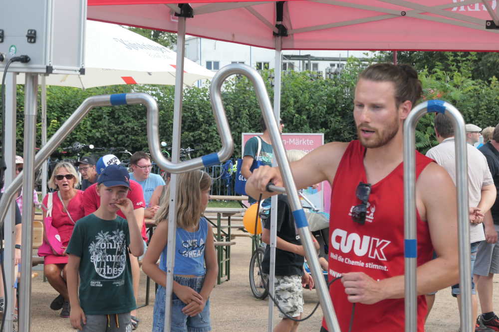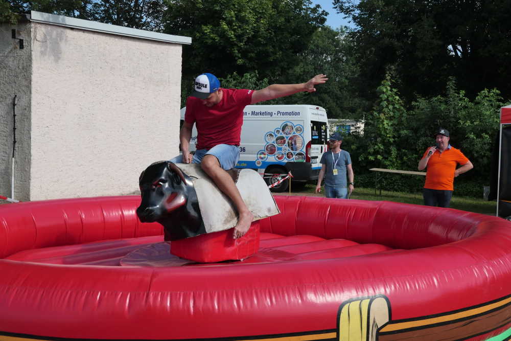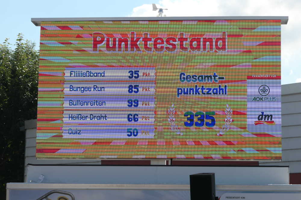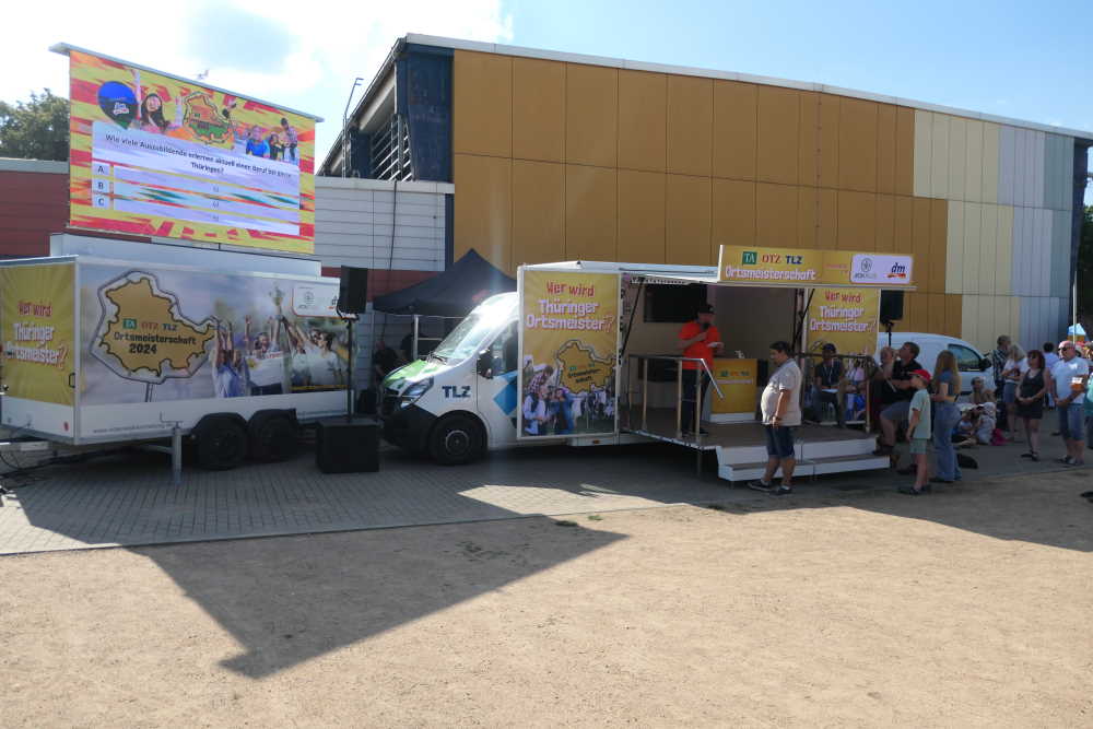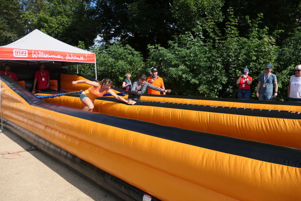 Mit viel Spaß und Unterhaltung fand am Sonntag, dem 11. August bei hochsommerlichen Temperaturen die Ortsmeisterschaft in Bad Köstritz statt. Nach der Begrüßung durch Verlagsgeschäftsführer der Funkemedien-Gruppe, Michael Tallai, TLZ-Chefredakteurin und Jurymitglied Gerlinde Sommer, dem Bad Köstritzer Bürgermeister Oliver Voigt und Moderator René Pfeuffer stürzten sich die Aktiven in Wettkämpfe. Mädchen, Jungs, Frauen und Männer waren schnell gefunden, um sich den herausfordernden Wettkämpfen in den Disziplinen Fliiiießband, Bungee Run, Bullenreiten, Heißer Draht und Quiz zu stellen. Mit motivierenden Anfeuerungsrufen und Beifall gaben die Köstritzer ihr bestes. Zum Schluss wurden 335 Punkte erzielt. Umrahmt wurde die Veranstaltung vom Chorgesang des ensemble Carmina und dem Blasorchester Elstertal. An vielen Ständen konnten sich vor allem die Kinder experimentierfreudig ausprobieren. Dazu gab es jede Menge Infos am Rande der Wettkämpfe