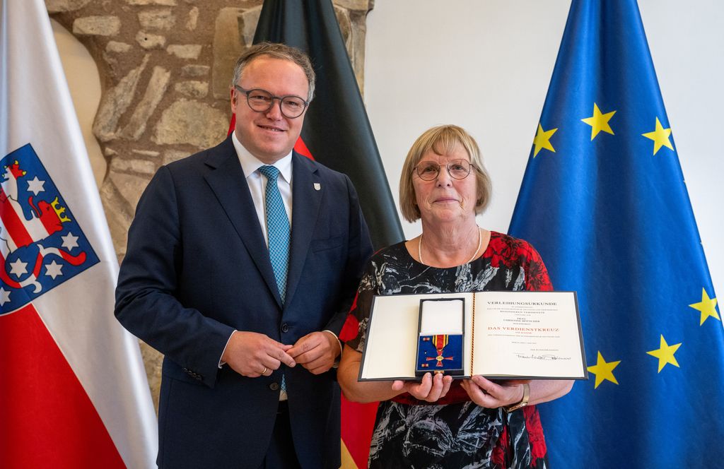 „Am Donnerstag, den 18.09.2025 ehrten wir mit dem Bundesverdienstorden Menschen, die unser Land prägen: Menschen, die anpacken, Brücken bauen und Hoffnung geben – oft ohne große Bühne, aber mit großer Wirkung. Sie gestalten die Heimat von über 2 Millionen Thüringerinnen und Thüringern, bewahren Kultur und stärken den Zusammenhalt. Sie stehen exemplarisch für mehr als 750.000 Thüringerinnen und Thüringer, die sich ehrenamtlich im Grünen Herzen Deutschlands engagieren. Durch ihren individuellen Beitrag setzen sie ein starkes Zeichen für Gemeinschaft und Verantwortung – das verdient unser aller Anerkennung und Unterstützung“, sagt Ministerpräsident Mario Voigt.