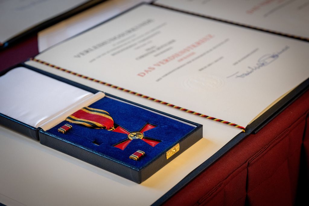 das Verdienstkreuz am Bande des Verdienstordens der Bundesrepublik Deutschland im Namen des Bundespräsidenten Frank-Walter Steinmeier für ihre Verdienste um das Gemeinwohl überreichen zu dürfen.“