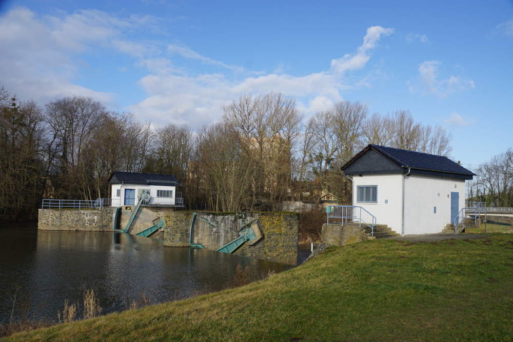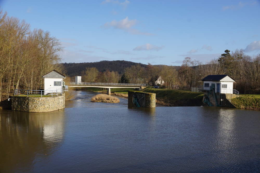 Muy marcado es la presa en Bad Köstritz a lo largo del río Elster. Esto se construyó durante el trabajo de regulación en el Weisse Elster en la década de 1930. El vertedero de caballete que solía pertenecer al Kornmühle fue reemplazado por el vertedero de techo actual. La presa fue renovada después de la inundación del siglo en 1954 y a finales de la década de 1960.