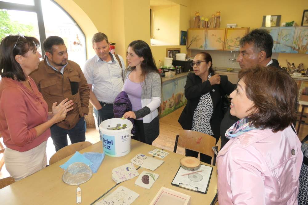 Der vorletzte Besuchstag war zunächst der Kindertagesstätte gewidmet. Die Kinder begrüßten die mexikanischen Gäste mit mehreren lustigen Liedern und zeigten ihre Lieblings-Spielgeräte. Die Leiterin der Einrichtung, Conny Edel führte durch die Räumlichkeiten und Außenanlagen. Besonders fasziniert zeigten sich die Gäste von der Vielfalt der Betätigungsmöglichkeiten, um verschiedene Dinge auszuprobieren und von der weitläufigen Gartenanlage. Man werde hier eine ganze Menge an Ideen mitnehmen, hieß es zum Abschluss des Rundgangs.