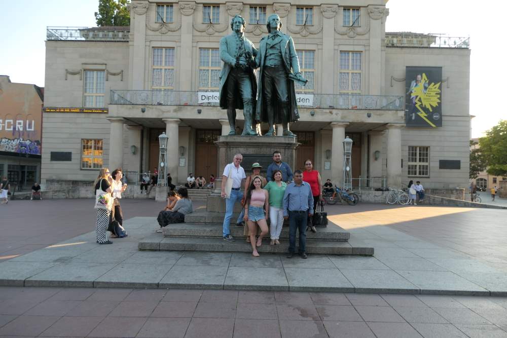 Das Eine-Welt-Haus und das Eine-Welt-Netzwerk in Jena waren tags darauf Gastgeber. Dort wurden u.a. Projekte aus den Städtepartnerschaften zwischen Jena und San Marcos in Nikaragua sowie weiteren Gemeinden in Togo und Mosambik besprochen. Viele Beispiele, wie Ausbildungspatenschaften, Schulpartnerschaften, Kleinkredite, Umwelt- und Medizinprojekte deuten auf diese seit vielen Jahren aktiv gelebten Verbindungen. Inwieweit sich davon Projekte für die Städtepartnerschaft Bad Köstritz Huamantla transferieren lassen, wird in den nächsten Videochats besprochen. Ein Blick vom Jentower und ein abendlicher Spaziergang durch die Klassikerstadt Weimar rundeten den informativen Tag ab.