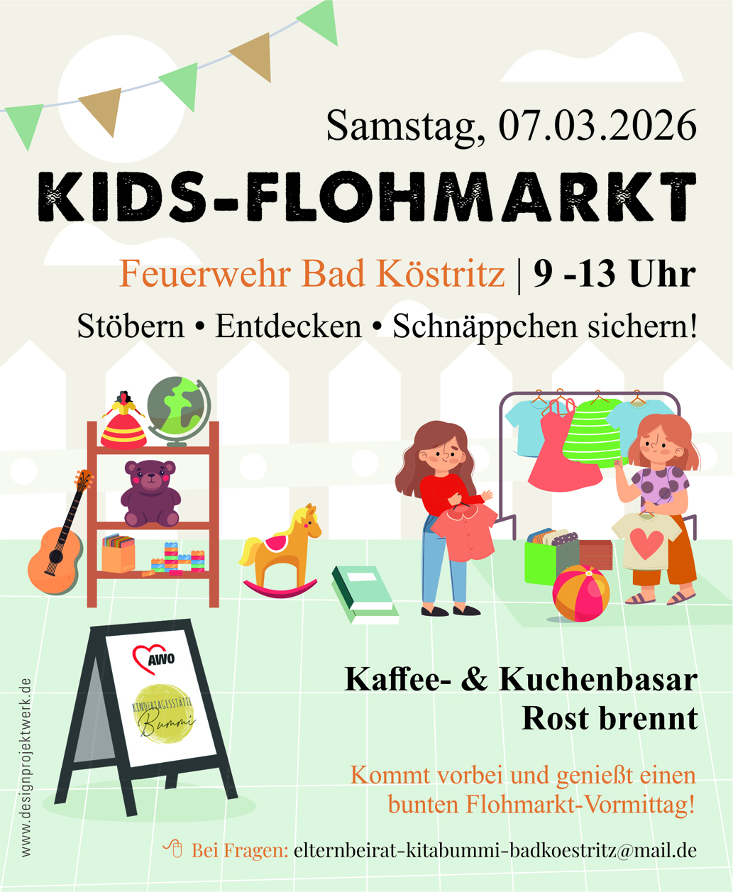 | 07.03.26 | 09:00-13:00 Uhr Flohmarkt der Kita Bummi in der Feuerwehr Bad Köstritz |