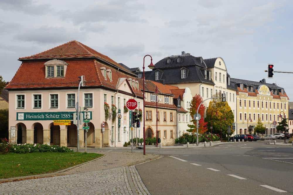 La idílica ciudad pequeña de Turingia, Bad Köstritz, está situada a lo largo del curso medio del río Weisse Elster. Numerosos túmolos funerarios en las colinas que rodean la ciudad demuestran que esta área fue colonizada por humanos ya en la Nueva Edad de Piedra. Pero una mención escrita de la ciudad, cuyo nombre se remonta a una fundación eslava entre los siglos VIII y X, se registra solo desde el siglo XIV. Además de otros 49 asentamientos de la castellanía de Langenberg, la ciudad fue mencionada por primera vez como ‚Kostricz‘ en una carta de embargo que data del 23 de mayo de 1364. El privilegio de la elaboración de la cerveza se otorgó a los señores de la mansión Wolframsdorf en el año de 1543, un fecha que se registra como año de fundación del arte de la elaboración de cerveza Köstritz. El maestro de capillade la corte sajona electoral, Heinrich Schütz, es considerado el hijo más famoso de la ciudad. Nació el 8 de octubre de 1585, en el ‘Obere Schenke‘ (posada superior) que hoy es un museo llamado Heinrich-Schütz-Haus. Fue el primer compositor alemán importante antes de J.S. Bach y trabajó durante más de 57 años en la corte sajona de Dresde. Los regentes de Reuss / Schleiz ganaron pie por primera vez en Köstritz en 1675 al comprar la mansión más baja de Köstritz. Se estableció un paragium llamado Reuss / Schleiz-Köstritz para la línea colateral descendente que influyó fuertemente en el desarrollo de la ciudad hasta 1945. Hoy, la cervecería fundada en 1696 como cervecería de cerveza negra y el parque ajardinado plantaron alrededor de 1800 según los estándares ingleses bajo el Príncipe Enrique XLIII Reuss Younger Line sigue siendo una característica importante que atrae a los visitantes a la ciudad como destinos turísticos en la entrada de la ‚Reussischen Fürstenstrasse‘ (ruta del Príncipe Reuss) Köstritz se hizo conocido como la ciudad de las flores por las actividades de los jardineros comerciales Deegen, Sieckmann, Herger y Schade. Estos nombres representan importantes éxitos de reproducción en dalias, rosas estándar y plantas de follaje multicolores que eran muy demandadas en toda Europa. Hoy en día, las dalias de Bad Köstritz todavía tienen mucho éxito y son reconocidas en grandes exhibiciones de flores. De 1886 a 1945, el Prof. Dr. Settegast, la Escuela Superior de Horticultura, fue una institución educativa de renombre internacional y la academia más importante de Turingia para jardineros y técnicos hortícolas.